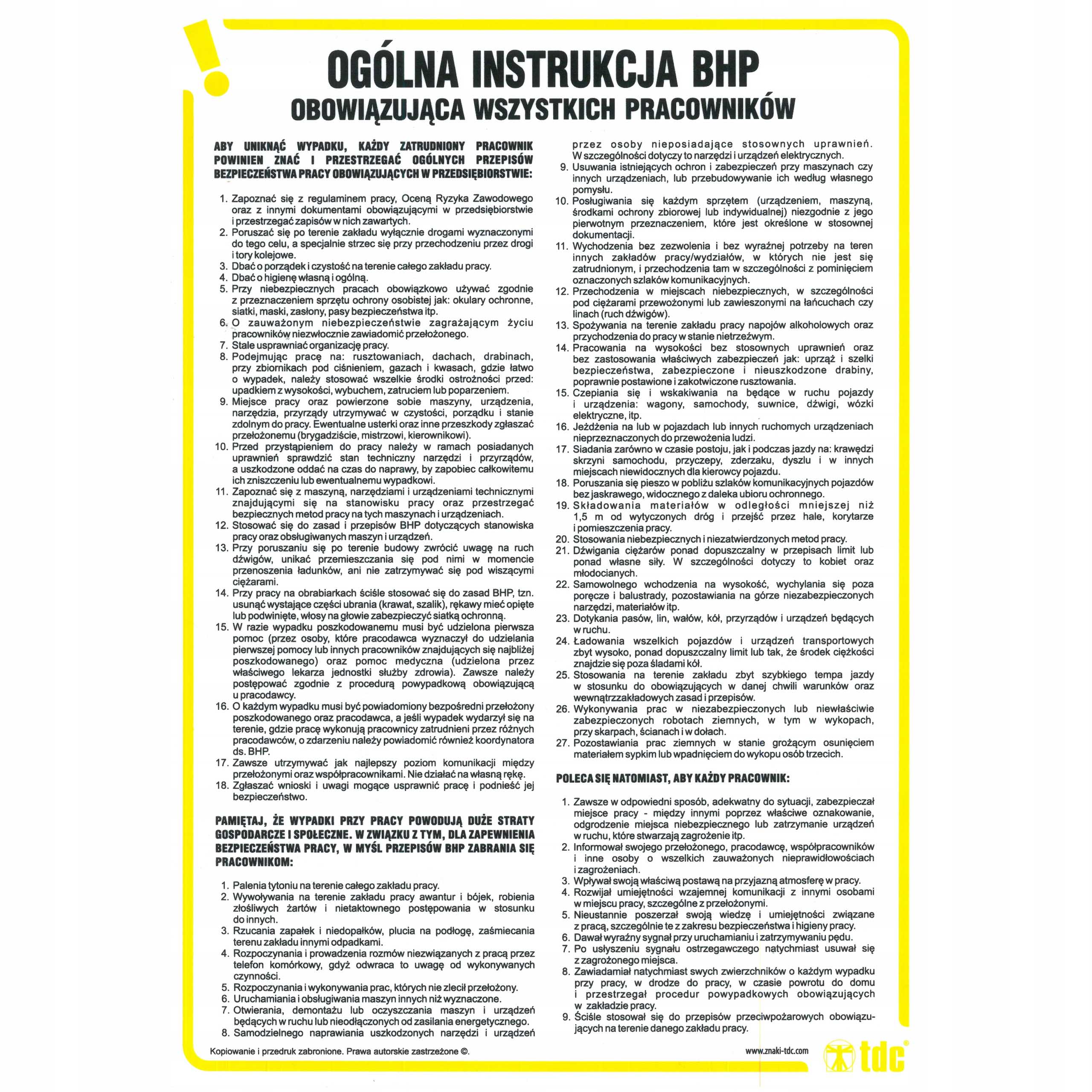 INSTRUKCJA OGÓLNA BHP OBOWIĄZUJĄCA WSZYSTKICH PRACOWNIKÓW – IA A01 DN CN